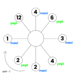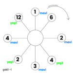 3)Sonuç iki mavi sayının ortasına yeşil sayılardan oluşmuş çark üzerinde dönerek doğru olan yeşil sayı getirilir.